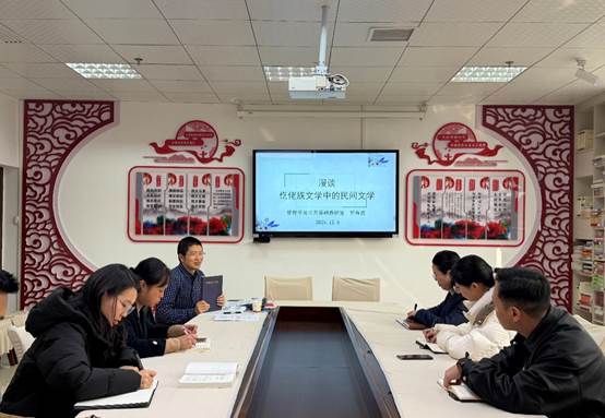 读书会邀请学校管理学院罗海波老师以“黔北地区仡佬族文学中的民间文学”为题进行授课。他从“仡佬”一词的来源讲述黔北仡佬族群的历史沿革,并向学员们普及民间仡佬族流传的创世神话等。通过互动交流等形式让大家对黔北地区仡佬族的历史由来及文化脉络印象深刻。