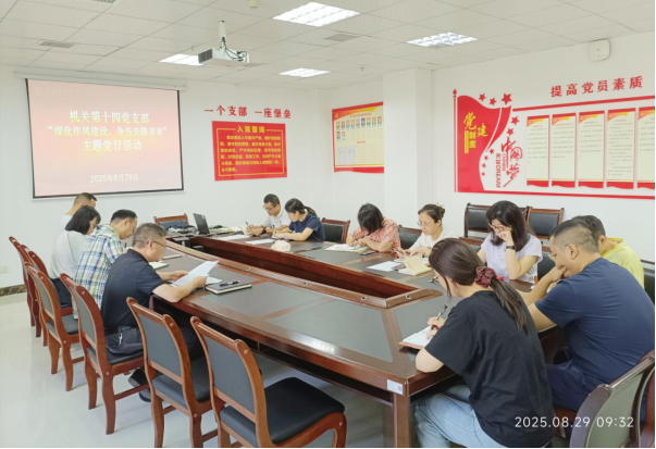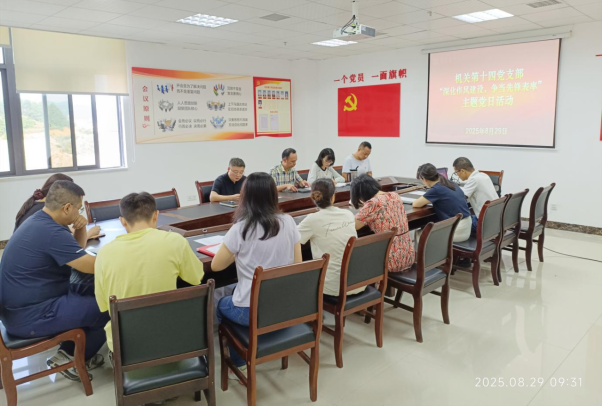 8月29日上午,机关第十四党支部在行政楼501党员活动室,开展“深化作风建设,争当先锋表率”主题党日活动,会议由支部书记罗世强主持,支部全体党员及入党积极分子参加。