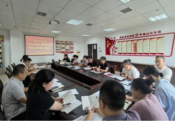 郭宇亮领学《习近平新时代中国特色社会主义思想学习纲要》部分内容。支部其他党员分别领学中国共产党第二十届中央委员会第三次全体会议公报及相关文件精神以及《中国共产党简史》《习近平关于全面加强党的纪律建设论述摘编》《中国共产党工作机关条例(试行)》等内容。全体党员集体学习《关于中国共产党党费收缴、使用和管理的规定》,观看《持续发力纵深推进》警示教育片,诵读《中国共产党章程》总纲部分。党支部组织委员王琴对党费交纳情况作专题汇报,并安排党费交纳工作。