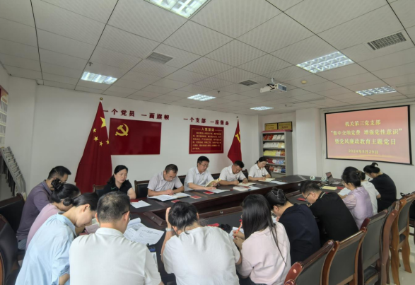 8月29日,机关第三党支部在行政楼801党员活动室开展“集中交纳党费 增强党性意识”暨党风廉政教育主题党日活动。党支部全体党员参加活动,支部副书记李菲主持,学校党委副书记郭宇亮以普通党员身份参会。