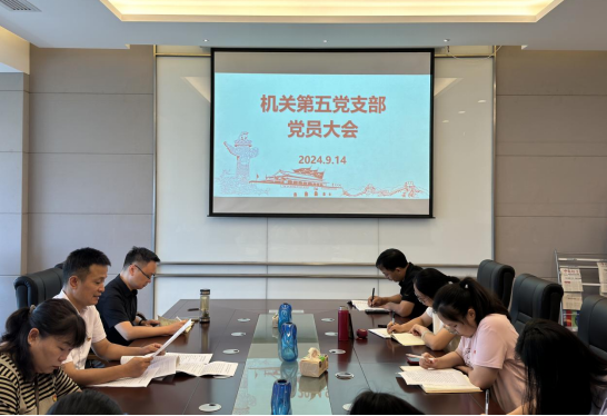 9月14日上午9:00,机关第五党支部全体党员在图书馆9楼支部会议室召开党员大会。会议由支部书记付延功主持。