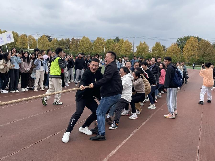 本次活动邀请到部分研究生导师代表、研究生培养单位老师代表和研究生新生共同参与。趣味运动项目包括跳大绳、拔河比赛、摸石过河、疯狂毛毛虫等项目。在活动现场,老师代表队与研究生代表队进行了各种热身交流比赛,大家争先恐后参与各类趣味项目,师生之间相互呐喊助威,气氛热烈。