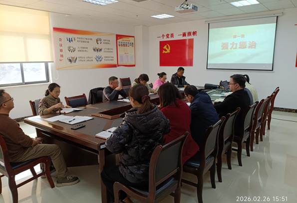 会上学习了习近平总书记在二〇二六年春节团拜会上的讲话、《求是》杂志发表习近平总书记重要文章《当前经济工作的重点任务》、习近平总书记主持二十届中共中央政治局第二十四次集体学习并发表重要讲话、习近平总书记在二十届中央纪委五次全会上发表重要讲话、《论党的自我革命》之党必须勇于自我革命以及新时代中国特色社会主义思想和基本方略等内容。