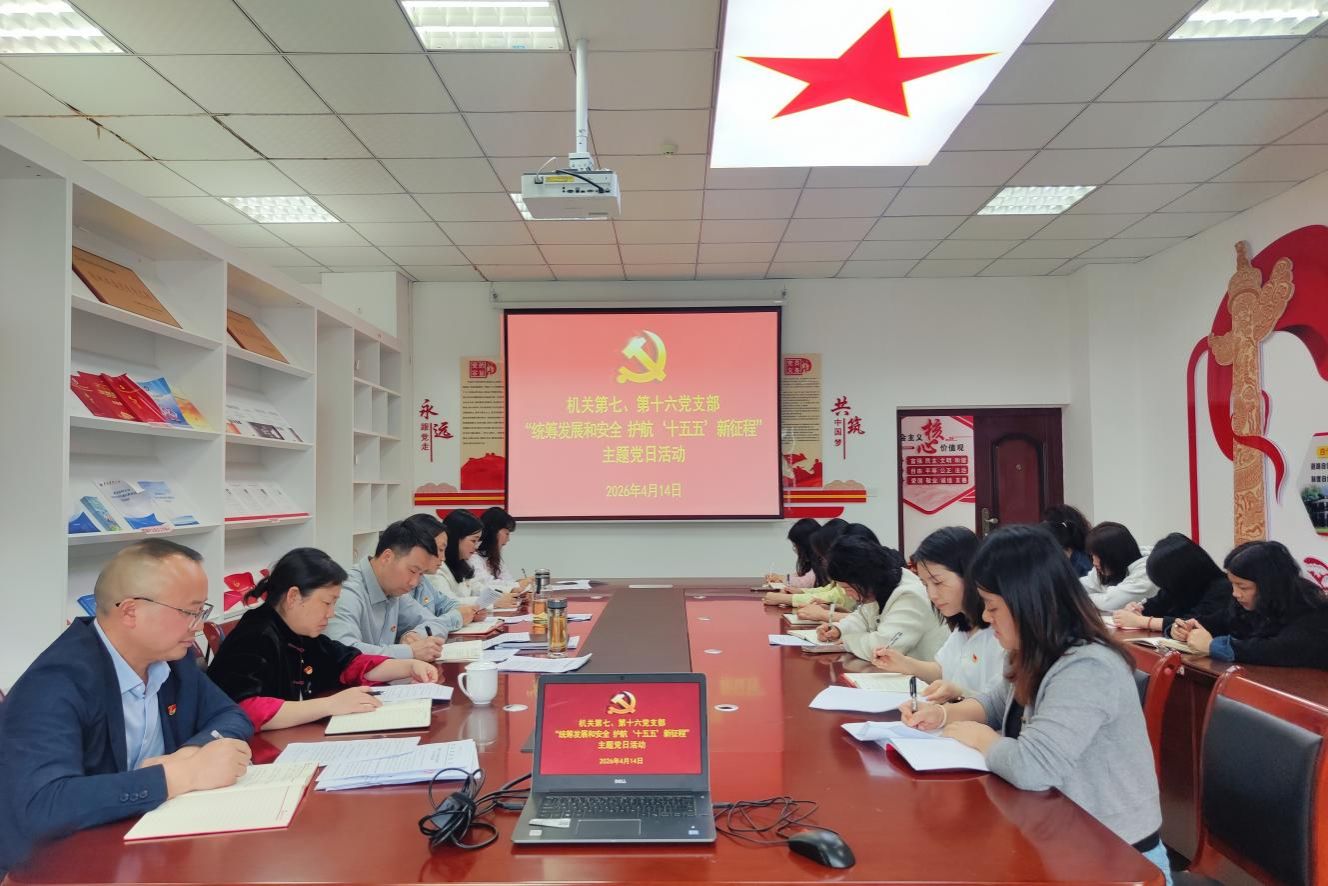 为深入学习贯彻党的二十届四中全会精神,理解“十五五”时期安全发展总体要求,引导党员将安全理念融入“三全育人”全过程,4月14日下午,机关第七、第十六党支部在新蒲校区学生中心506室联合开展“统筹发展和安全 护航‘十五五’新征程”主题党日活动。