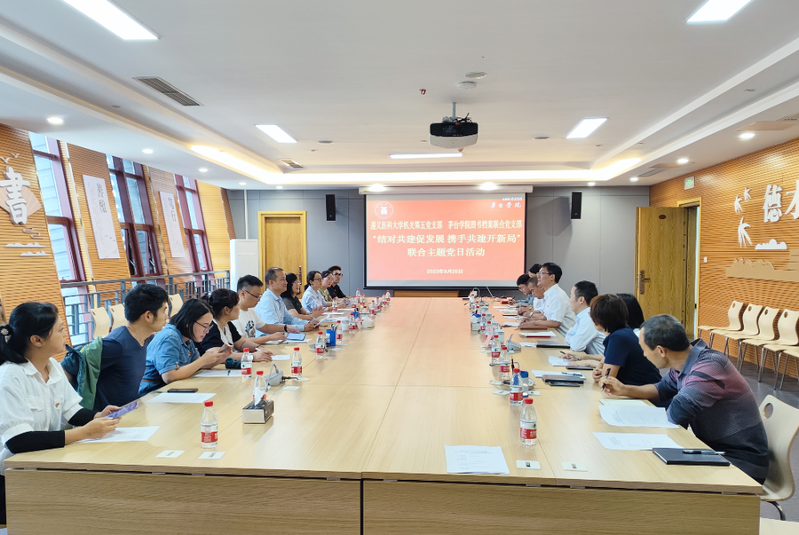 为进一步推进党建与业务工作深度融合,9月26日,机关第五党支部全体党员及民主党派、图书馆馆长李小平一行赴茅台学院,与茅台学院图书档案联合党支部共同开展了“结对共建促发展,携手共建开新局”主题党日活动。双方在茅台学院图书档案联合党支部会议室召开座谈会,茅台学院图书档案联合党支部书记李萍及支部党员参加会议。会议由茅台学院图书档案联合党支部副书记鹿猛主持。