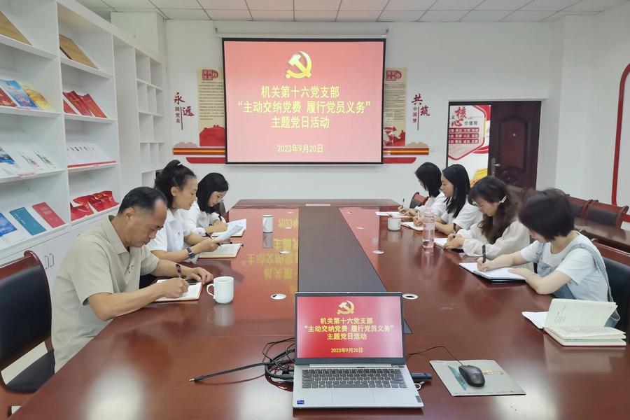 为引导党员强化党性观念,自觉履行党员义务,进一步增强身份认同感、组织归属感、集体荣誉感,9月20日上午,机关第十六党支部在学生中心506室党员之家开展“主动交纳党费 履行党员义务”主题党日活动。党支部全体党员参加活动。
