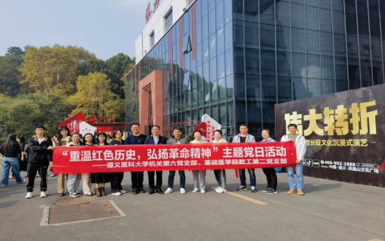 11月15日,遵义医科大学机关第六党支部联合机关第八党支部、基础医学院教工第二党支部前往遵义市红花岗区《伟大转折》剧场,开展“重温红色历史,弘扬革命精神”主题党日活动,组织党员观看大型长征文化沉浸式演艺剧目《伟大转折》,重温红色历史,感悟百折不挠、奋斗不息、爱国为民的长征精神和遵义会议精神。