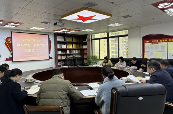 12月17日,机关第三党支部在行政楼801党员活动室开展“初心如磐 奋楫笃行”主题党日活动。党支部全体党员参加,学校党委副书记郭宇亮以普通党员身份参会,党支部副书记李菲主持。