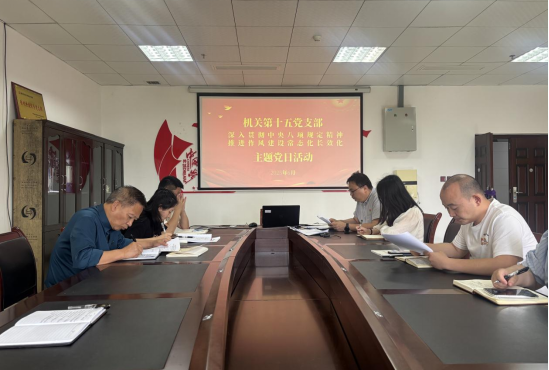 6月27日下午,机关第十五党支部在党员活动室开展“深入贯彻中央八项规定精神 推进作风建设常态化长效化”主题党日活动,支部全体党员参会,机关党委委员龙运友到会指导,会议由支部支委司马宇主持。