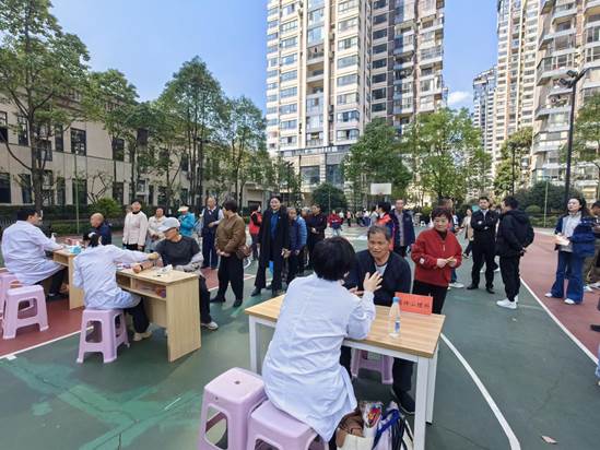 活动现场,遵医附院、遵义市中医院的内科、肺病科、精神科专家组成党员志愿服务队,为居民提供血压血糖检测、中医问诊、心理疏导及慢性病用药调整等多项免费义诊服务。活动现场秩序井然,专家团队们耐心解答居民疑问,仔细查看居民带来的用药清单,并针对老年群体常见病给予个性化康复建议,帮助其优化用药方案。